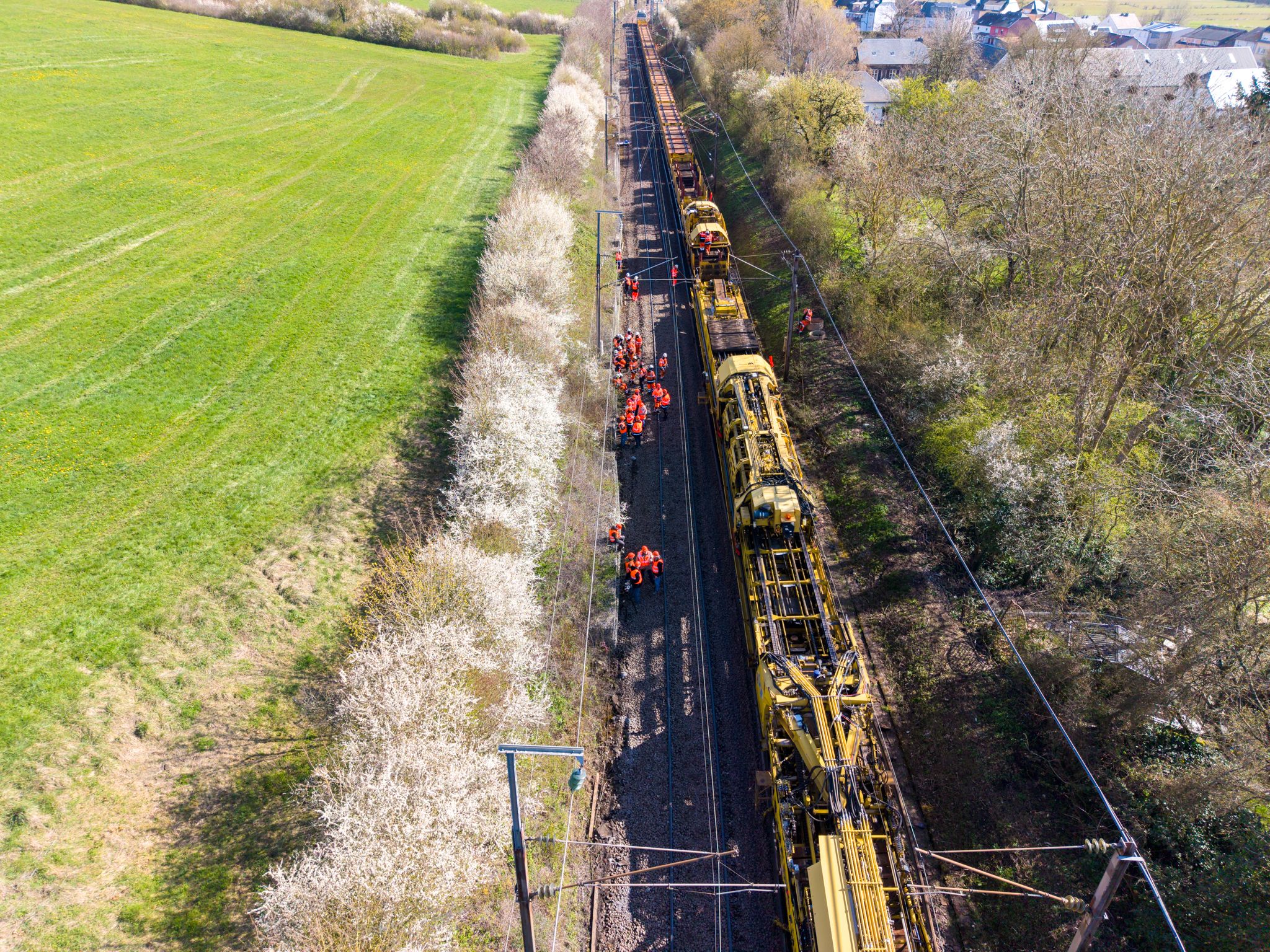 Further maintenance work took place on the line between Luxembourg and Arlon. In the Belgian–Luxembourg border region, numerous sleepers were replaced and the ballast supporting the tracks was stabilised. At the same time, switches were maintained and hedges trimmed to ensure they do not interfere with train operations in the future.